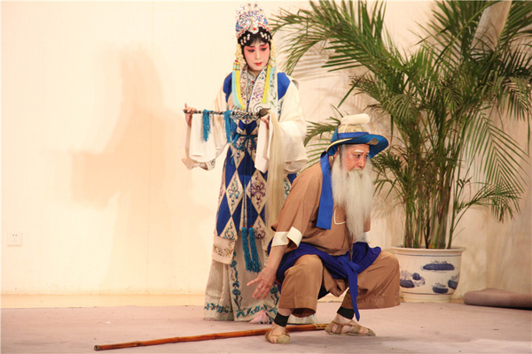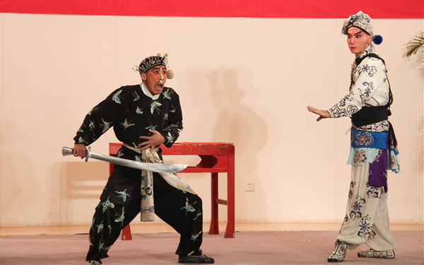 接着是《三岔口》和《秋江》两个经典剧目片段表演。《三岔口》中优秀青年演员王宇舟扮演任堂惠,优秀青年演员王浩扮演刘利华,他们精彩的打斗,准确无误的筋斗连翻,虚拟黑暗中的激烈格斗惟妙惟肖;《秋江》中国家一级演员徐畅扮演陈妙常,她的表演细腻传神,唱腔优美。国家一级演员吕昆山扮演艄翁,他诙谐活泼的唱腔,逼真的艄翁动作,令观众陶醉。两人配合默契,特别是模拟船只在水中晃动的场景,简直就像他们正站在微微晃动的小船上,把京剧艺术中虚实结合的写意方式表现得淋漓尽致。