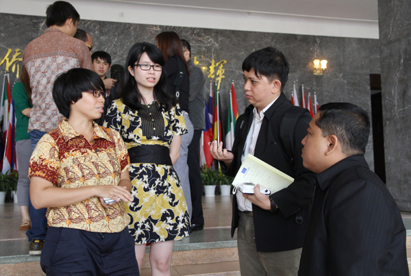 记者们分别与在校就读的马来西亚、印尼、泰国学生进行交谈