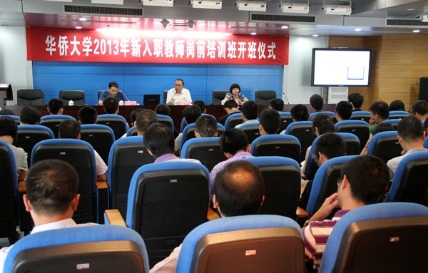 华侨大学2013年新入职教师岗前培训班昨日开班。据了解,新入职教师已于7月16日、17日统一到校报到。为使新入职教师尽快熟悉了解学校环境,尽快进入工作状态,学校专门举办为期9天的岗前培训。