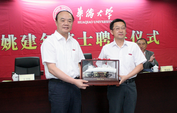 贾益民校长向姚建年院士颁授华侨大学双聘院士证书