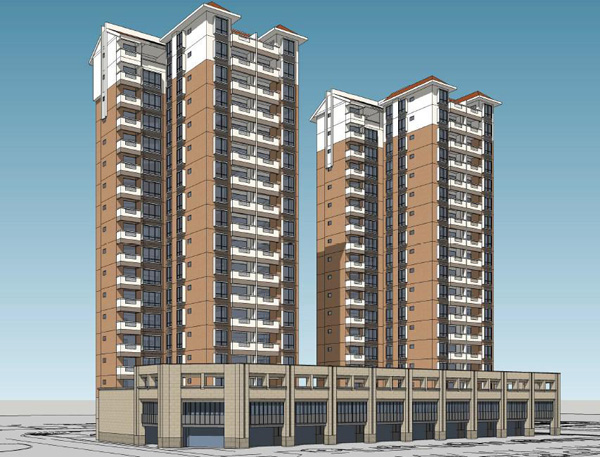 拟建的人才公寓二期工程位于新南小区南面、尤梅幼儿园东侧,包括1#、2#楼两幢主楼及其地下人防工程、裙楼,项目用地面积6575平方米、占地面积1746平方米,总建筑面积18383平方米。其中,地下室面积3669平方米、套房13559平方米、配套用房3381平方米,规划地下停车位83个、地面停车位34个。在平面布局上,地下一层为人防工程及停车库;一至二层裙楼为配套的设备用房、管理用房等;主体建筑三至十八层为标准三房两厅套房,分A、B两种户型,其中A户型建筑面积99.2平方米,B户型建筑面积100平方米,建成后可提供教职工周转房120套左右。