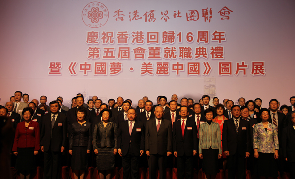 6月12日晚,香港侨界社团联会第五届会董就职典礼在香港会议展览中心新翼三楼大会堂举行。全国政协副主席董建华、李海峰,香港特区署理行政长官林郑月娥,国务院侨务办公室主任裘援平,中国侨联主席林军,中央政府驻香港联络办副主任殷晓静,华侨大学校长贾益民等应邀出席典礼,并担任主礼嘉宾。