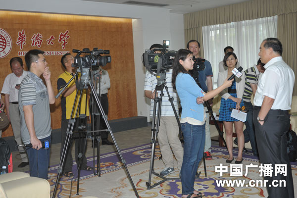 华侨大学校长贾益民在接受中央媒体采访(摄影黄光辉、张林)