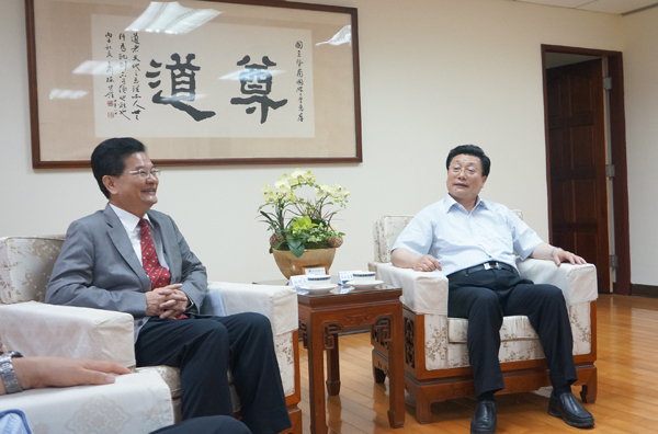 贾益民访问金门大学,与金门大学校长李金振等座谈交流。