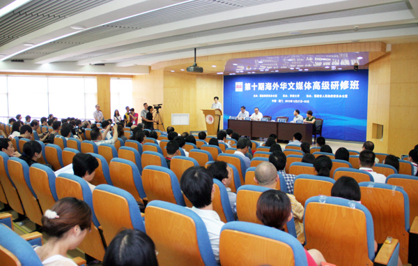 据了解,在华大研修期间,研修班学员们除聆听杨毅局长所作的主题报告外,还分别听取了中国媒体理论家谭华孚教授、厦门大学广告学专家陈培爱教授、华侨大学传统文化研究专家徐华教授的专题讲座:《新旧媒体的碰撞与交融》、《“中国元素”与广告的跨文化传播》、《中华传统文化的核心价值与当代传播》。