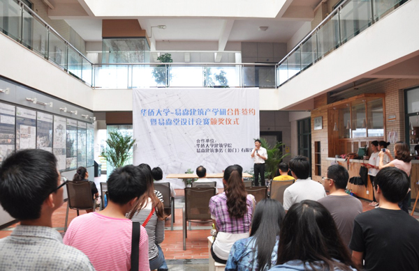 建筑学院、校团委相关负责人等出席签约仪式,与会嘉宾还为易森堂设计竞赛中的获奖选手颁奖。