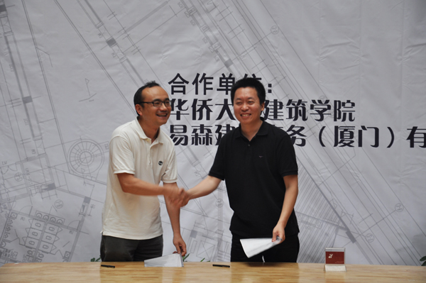 建筑学院日前与易森建筑有限公司签订产学研合作协议。根据协议,易森建筑有限公司将在华侨大学建筑学院设立产学研基金,用于支持建筑学院开展学术交流、科研活动以及奖励优秀学生。双方将在优势科研领域进行充分的交流与合作,并在实验室建设、人才培养领域相互支持和合作。