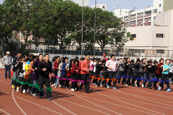 3月12日下午,春光明媚,惠风和畅。由教育工会女工委主办的“三八节”系列活动之蜈蚣赛趣味活动在泉州、厦门两校区田径运动场分别开展,来自机关、学院、后勤等工会的52支队伍500余人参加比赛。