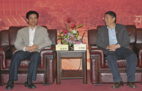 党委书记李冀闽、党委副书记朱琦环在陈嘉庚纪念堂二楼接待室欢迎陈锦华副总一行。