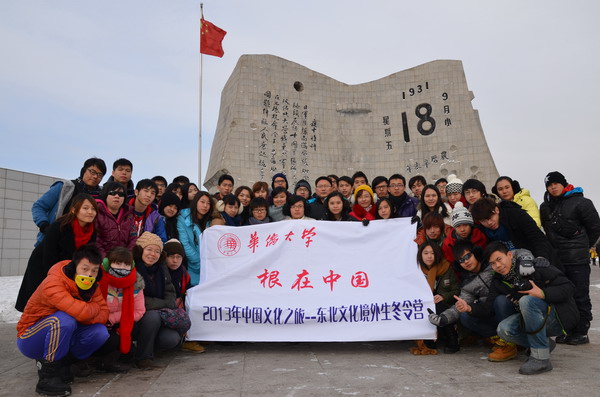 1月25日,华侨大学2013年中国文化之旅“走进东北”优秀境外生冬令营顺利闭营。此次“走进东北”冬令营以历史文化和自然风光为主题,营员们走访了九一八事变陈列馆、伪皇宫等爱国主义教育基地,参观了北陵公园、沈阳故宫、太阳岛公园、索菲亚教堂等历史文化景点,游览了冰雪大世界、亚布力度假区等自然风光。