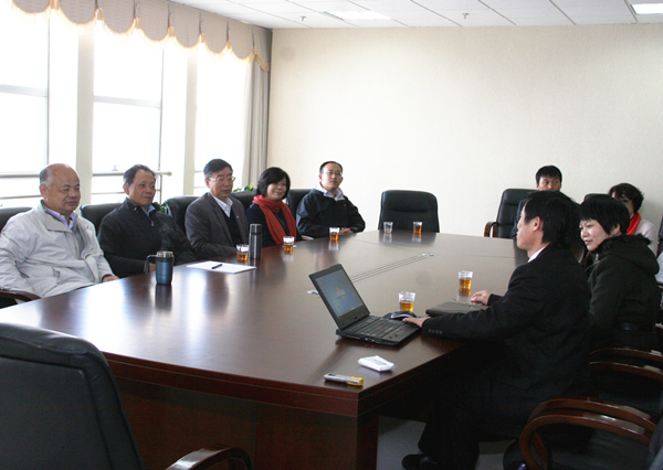 吴定富、李冀闽(左三)、丁国炎(左一)等听取研究院负责人的汇报