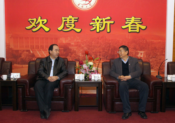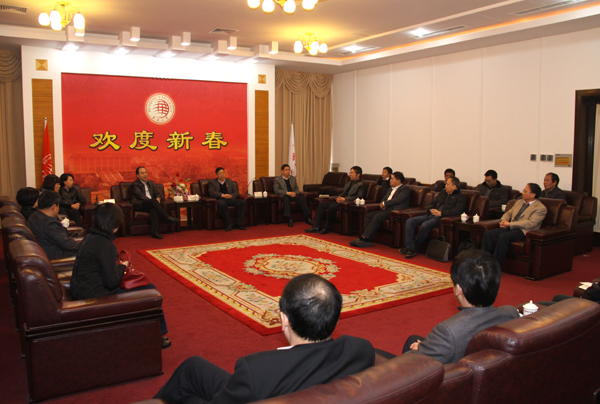 校党委书记李冀闽,党委副书记、副校长关一凡,副校长刘斌在陈嘉庚纪念堂二楼接待室接待来访客人。
