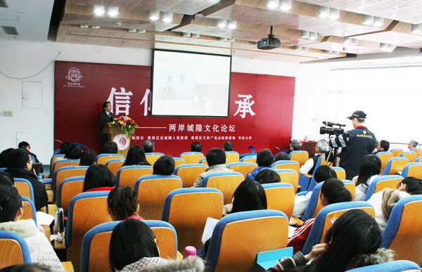 “信仰与传承——两岸城隍文化论坛”1月4日在华侨大学厦门校区王源兴国际会议中心103报告厅举行。海峡两岸的台湾城隍文化专家、福建省文史研究馆专家、闽南文化研究会专家,以及华侨大学师生代表近100人参加论坛。