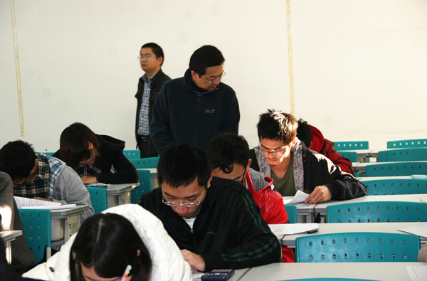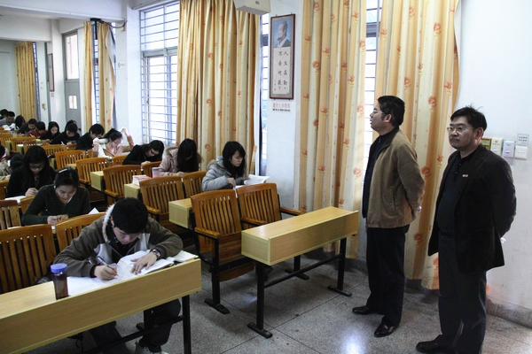 据悉,我校今日上午共有163个班级的9000名考生分布在171间考场进行考试。经巡视,两校区考场总体秩序井然,情况良好。法学院还专门为学院负责人和监考老师发放巡考证及监考证,此举为增强巡考、监考老师的责任感,严肃考风起了较好示范作用。