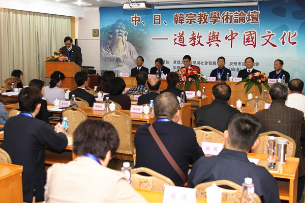 12月14日上午,华大泉州校区专家招待所会议厅传来中、日、韩三种语言交替的发言和阵阵掌声,中、日、韩宗教学术论坛在此间开幕。40余名中、日、韩三国专家学者会聚华侨大学,共同交流“道教与中国文化”。