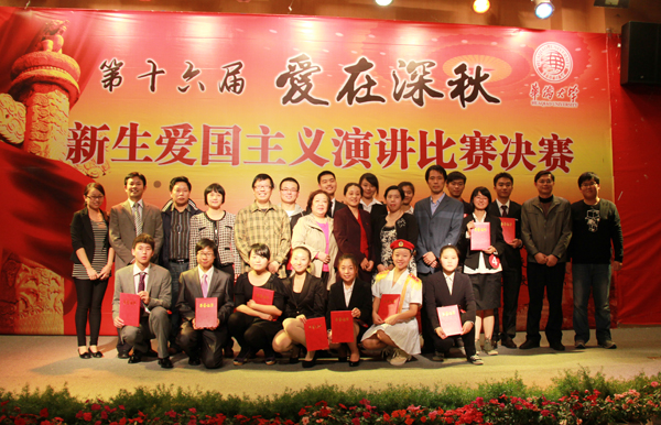 12月15日下午,华侨大学第十六届“爱在深秋”新生爱国主义演讲比赛决赛在明德堂举行。经过激烈角逐,经济与金融学院魏晨同学荣获特等奖,土木工程学院陈晓燕等两名同学获一等奖,计算机学院衡昊苏等三名同学获二等奖,旅游学院杨明明等六名同学荣获三等奖;公共管理学院林嘉炜同学荣获境外生一等奖,文学院刘强明同学获境外生二等奖。