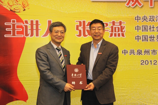 李冀闽向张宇燕颁发华侨大学兼职教授聘书