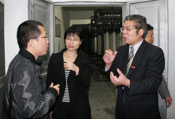 考核组听取工作汇报,重点了解我校中水系统建设与运行情况,还实地察看中水处理站和设施设备运行情况。