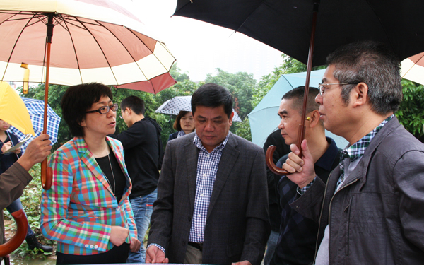 集美区委书记倪超(左一)考察厦门校区拆迁推进情况