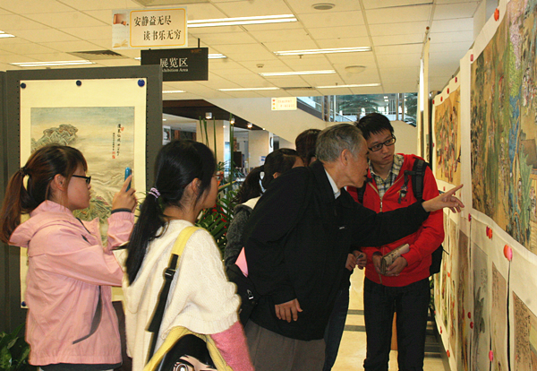 姚祖斌教授向前来参观的师生介绍作品