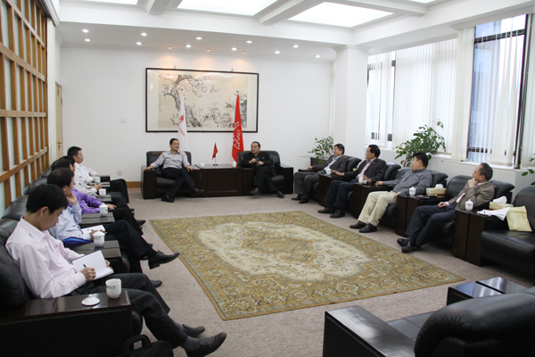 校长贾益民、党委书记李冀闽、副校长张禹东,校长助理彭霈、曾路在李克砌纪念楼四楼接待室接待来访客人。