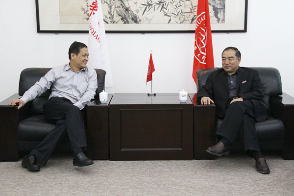 校长贾益民与福建省侨办主任杨辉(左)亲切交谈