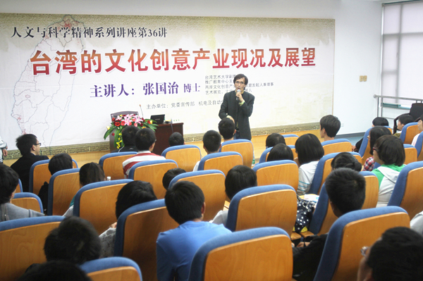 11月9日下午,台湾艺术大学副教授、两岸文化创意产业研究联盟发起人张国治博士主讲“人文与科学精神系列讲座”第36讲:《台湾的文化创意产业现况及展望》。
