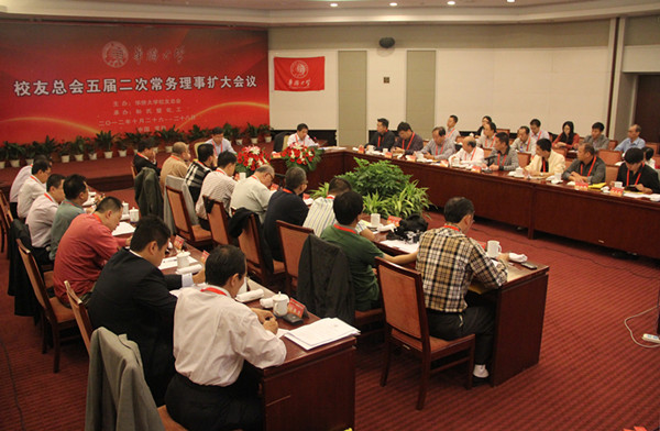 关一凡作五届一次常务理事扩大会议以来学校工作报告,回顾了一年来学校在教学科研、人才建设、学生工作、华文教育、服务社会、改善办学条件等方面所做的工作;并希望各地校友会不断加强自身建设,繁荣华大校友文化,共同推进母校新一轮跨越式发展。