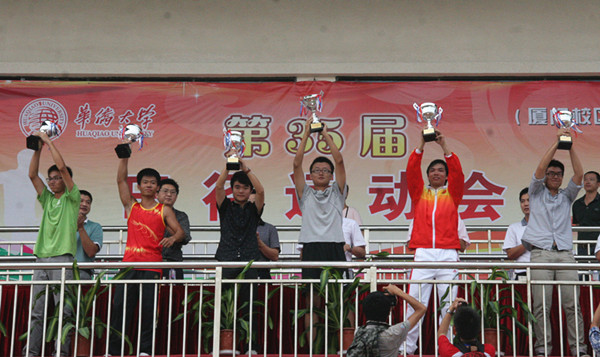 经过两天的激烈较量,各项成绩决出。学生组男女团体总分前六名分别为:土木工程学院、化工学院、信息科学与工程学院、华文学院、机电及自动化学院、材料科学与工程学院;教工组团体总分前六名分别是:华文学院、机电及自动化学院、哲学与社会发展学院、化工学院、计算机科学与技术学院、土木工程学院。学生男子组团体总分前六名分别为:土木工程学院、信息科学与工程学院、机电及自动化学院、化工学院、华文学院、材料科学与工程学院;学生女子组团体总分前六名分别为:化工学院、信息科学与工程学院、华文学院、材料科学与工程学院、土木工程学院、建筑学院。