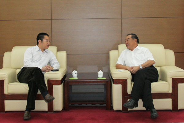 校长贾益民与凤凰卫视控股有限公司凤凰教育执行董事、总经理吴炜强(左)亲切会谈