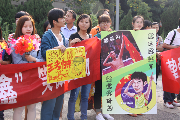 华大学生热情欢迎奥运健儿的到来