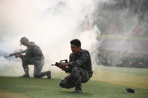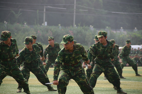 华侨大学2012级境内新生军训活动今日结束。上午,新生军训会操暨表彰大会在泉州校区和厦门校区田径运动场分别举行,参训学生表演了刺杀操、军体拳、卫生与救护、格斗术和匕首操等项目,展示自己的军训成果。