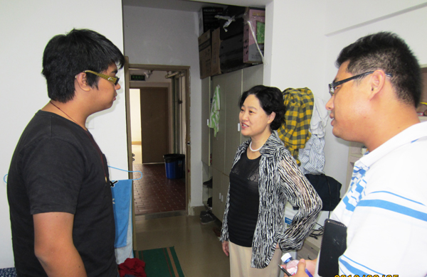 校党委副书记朱琦环走访学生宿舍,了解学生的学习、生活情况。