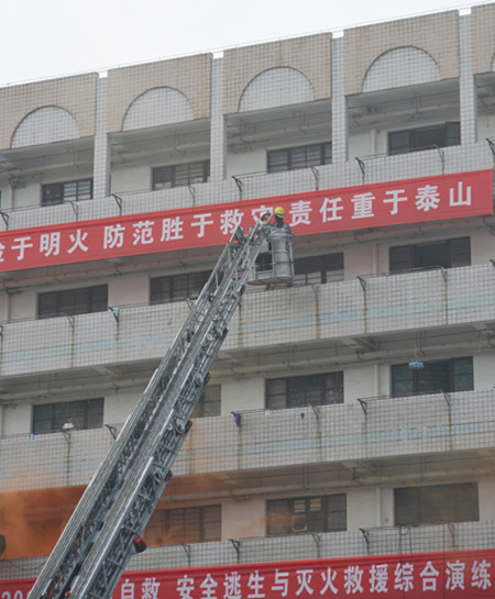 为全面加强新生安全教育、保护新生合法权益、维护校园安定秩序,18日下午,我校与泉州市丰泽区公安消防大队联合开展消防自救、安全逃生与灭火救援综合演练。消防演练在北区学生宿舍18号楼前操场举行,共分为紧急疏散演练、云梯消防车救援、消防业务技能演示、以及灭火器扑救火盆、液化气罐演练以及消防知识图片展览、消防器材装备展示四个部分。