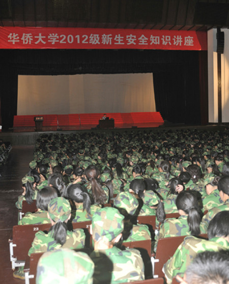 消防演练之前还举办了安全知识讲座。华大派出所所长张哲明采用现实中鲜活的例子,讲解“防骗、防盗、防事故”等安全知识的重要性,提醒同学们在日常生活中处处留心自身安全。泉州市丰泽区公安消防大队参谋吴晓羽为大家讲解了消防安全知识。