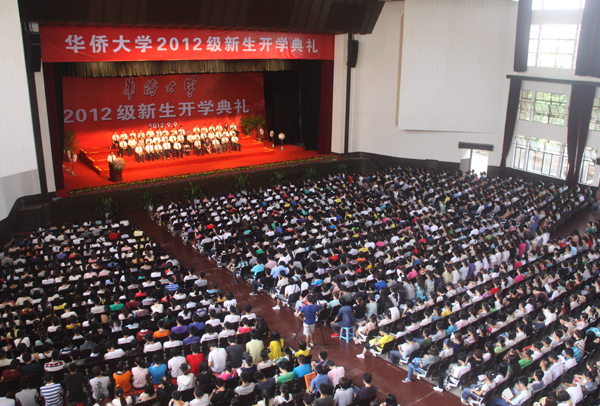 华侨大学2012级新生开学典礼今日上午和下午分别在厦门校区田径运动场、泉州校区陈嘉庚纪念堂观众厅隆重举行。来自全球28个国家和地区的6280名本科生和1033名硕士、博士研究生在新学年加盟华大,成为华侨大学新的主人。
