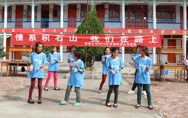 华侨大学2012积石山支教团7月29日结束了支教活动。在近一个月的支教生涯中,他们进行了教学、家访、“一帮一”助学金发放等内容。离别前,六所受援学校还分别举办了“爱因为在心中”汇报演出。