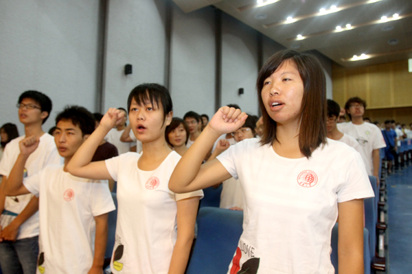 参加社会实践的学生们并做出了“克服困难、发挥所长、全力以赴、奉献社会”的承诺。