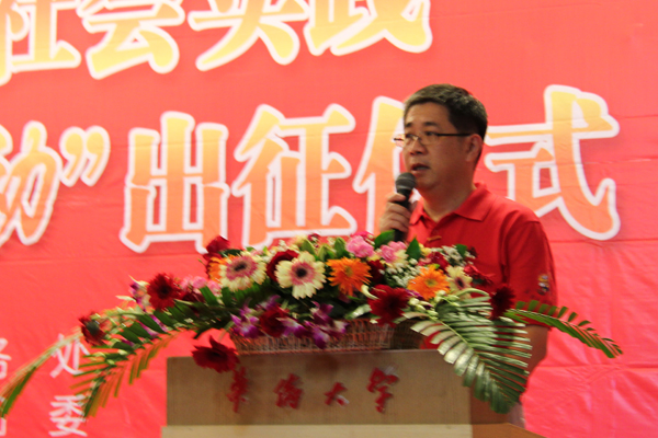 副校长关一凡,校长助理曾路,党委学工部、党委统战部等部门负责人,各民主党派代表、各学院相关负责人参加出征仪式,并为社会实践团队授旗。