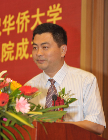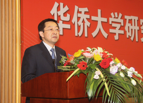 国务院侨办文化司副司长李民宣读国务院侨办关于同意华侨大学设立研究生院的批复(张林 摄)
