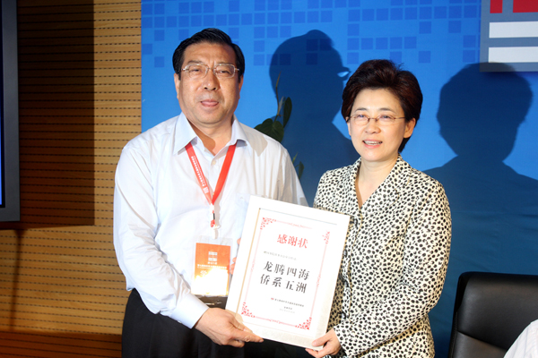 学员代表、韩国《知己知彼中国新闻报》社长李长作向国务院侨办宣传司赠送感谢状
