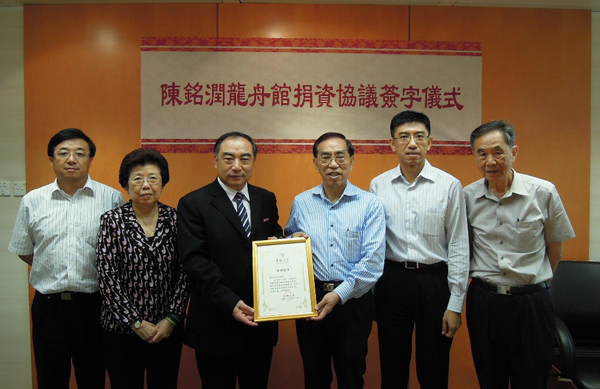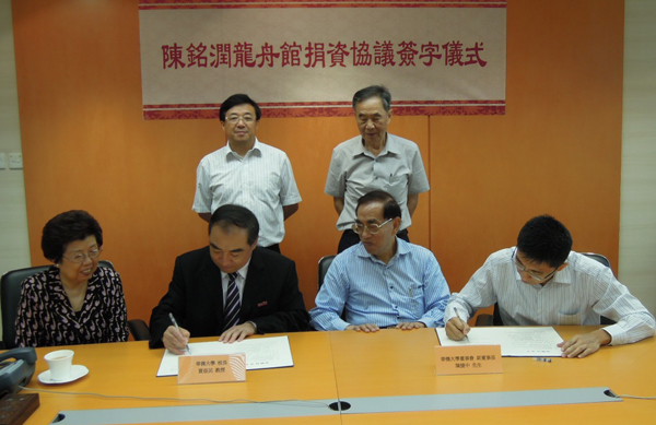 6月12日上午,校长贾益民与香港新富集团主席、华侨大学董事会副董事长陈捷中先生签订捐赠协议书。陈捷中先生慷慨捐资500万港币用于建设华侨大学厦门校区“陈铭润龙舟馆”,主要用于龙舟教学与训练。