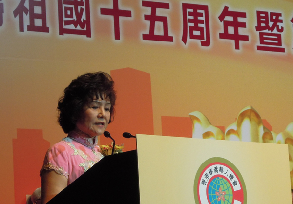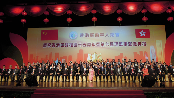6月12日晚,香港华侨华人总会庆祝香港回归祖国十五周年暨第六届理监事会就职典礼在香港会展中心新翼三楼大会堂隆重举行,华侨大学校友李碧葱女士荣任新一届香港华侨华人总会会长。