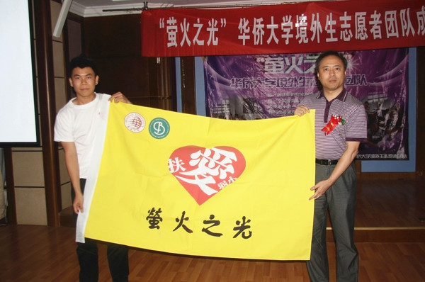 校长助理曾路为华侨大学“萤火之光”境外生志愿者团队授旗