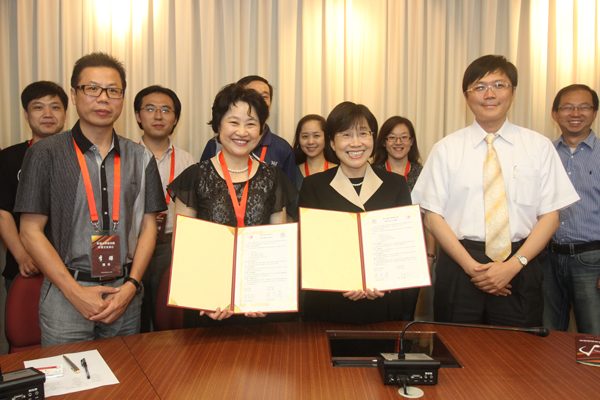 5月22日上午,华侨大学与台南大学签订学术交流合作协议。受华侨大学校长贾益民委托,在台南大学访问的华侨大学领导朱琦环与台南大学校长黄秀霜分别代表双方在协议书上签字。