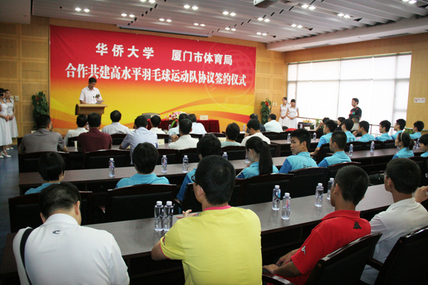 5月19日上午,华侨大学与厦门市体育局合作共建高水平羽毛球运动队签约仪式在厦门校区国际会议交流中心举行。华大副校长吴季怀、厦门市体育局副局长颜智伟分别代表双方在协议书上签字。