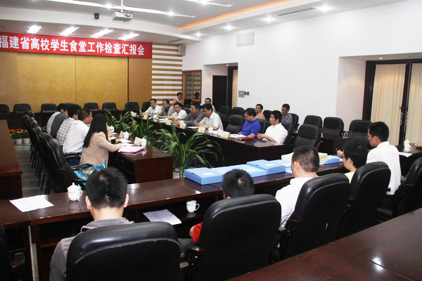 21日下午,由福建师范大学后勤集团党委副书记张鹏程任组长的福建省高校学生食堂工作检查组一行五人莅校检查指导工作,听取我校关于学生食堂工作情况汇报。汇报会在陈嘉庚纪念堂二楼会议室举行,副校长刘斌,后勤处、宣传部、学生处、财务处、保卫处等部门负责人出席汇报会。
