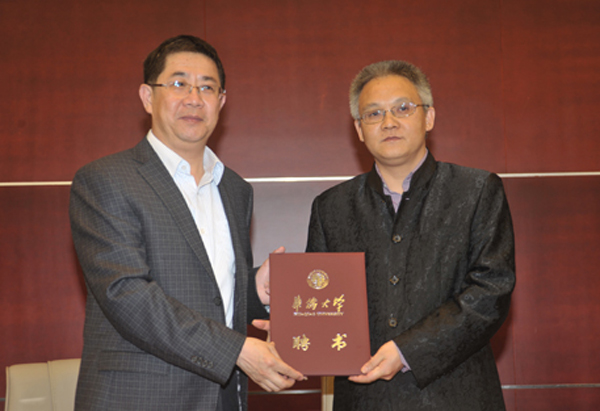 关一凡为马骏颁发华侨大学兼职教授聘书