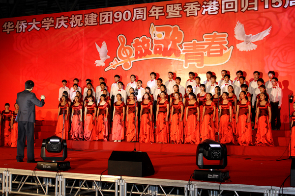 5月5日、6日,由党委学工部、党委宣传部、校团委主办的“放歌青春”华侨大学庆祝建团90周年暨香港回归15周年合唱比赛分别在泉州校区陈嘉庚纪念堂观众厅、厦门校区B区广场举行。党委副书记、副校长关一凡到场观看比赛。