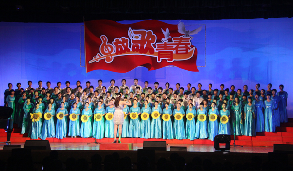 在观众们的热情欢呼声中,各学院参赛队伍一一亮相,以饱满的热情、嘹亮的歌声,唱响了《保卫黄河》、《我和我的祖国》《光荣啊,中国共青团》、《四渡赤水出奇兵》、《东方之珠》、《在太行山上》、《敬礼国旗》、《青春舞曲》等一首首荡气回肠的经典歌曲,重温共青团发展的光辉历程,表达了对祖国的无限热爱和对祖国美好明天的祝愿,充分展示出我校学子的青春风采。